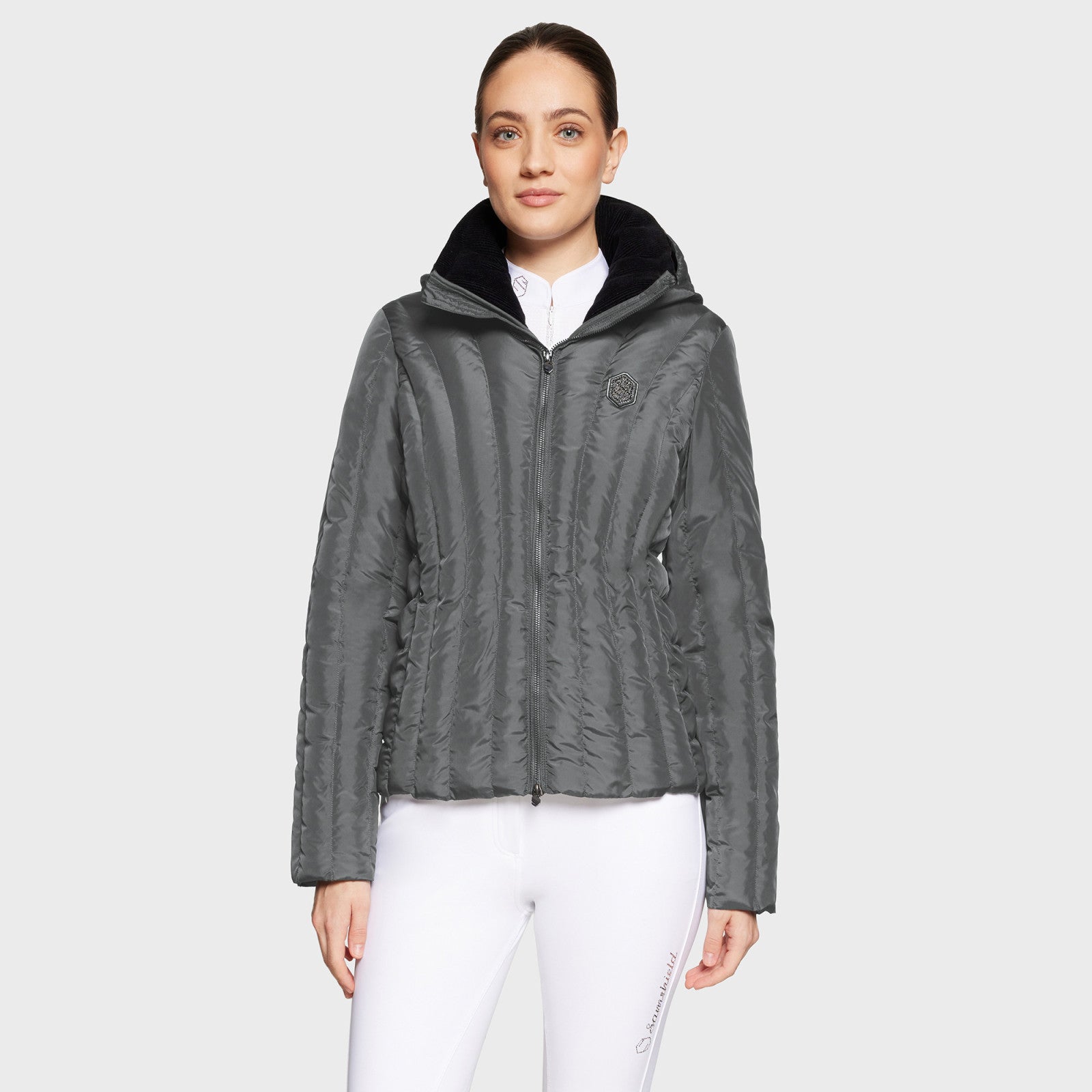 Courchevel reflective women's down jacket. Designed for riders looking for a sober, fitted style with zip, for everyday wear or on horseback.
